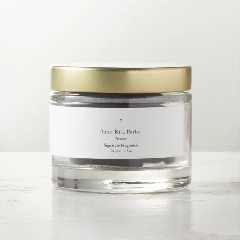 Composed of over 18 rare and organic essential oils, incense cones are handmade by Saint Rita Parlor, a Los Angeles brand inspired by the founder’s late grandmother, Rita. Signature fragrance features notes of whiskey, tobacco and rose in homage to Rita, who would tend to her rose garden whilst smoking a hand-rolled tobacco cigarette and drinking a whiskey and water.