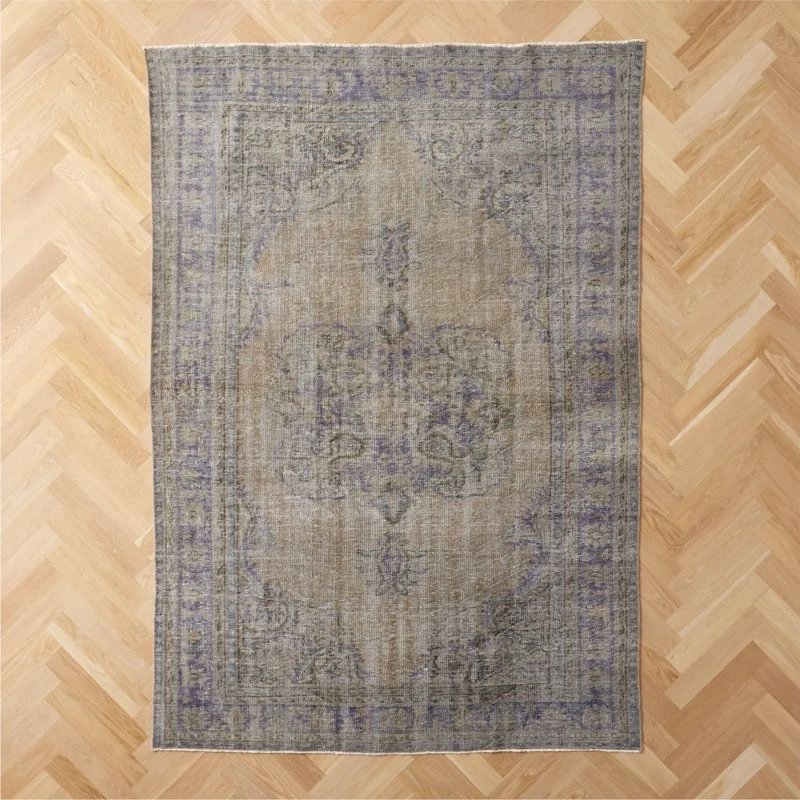 Characterized by a traditional pattern, hand-knotted wool rug is sourced from the Turkish city of Isparta—a major center for weaving during the Ottoman Empire. Framed with fringe, the central medallion design features pops of turquoise over a distressed olive green background. Made by hand of pure wool using a double-knot technique for durability, one-of-a-kind heirloom rug will last for years to come. CB2 exclusive.