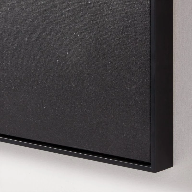 “Vulcano” is a series of over-painted photographs by Italian artist Fabian Albertini. Her dreamlike depiction of lava, rendered in glossy and textured black acrylic, stands in stark contrast with the white plane. This reductive print of the original work is stretched over a frame for effortless display in your home collection.