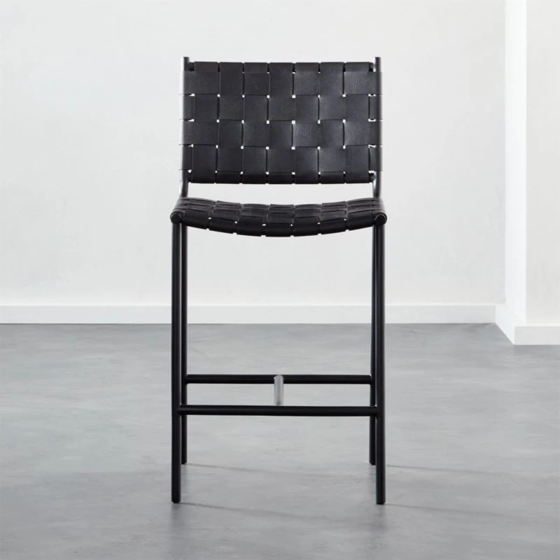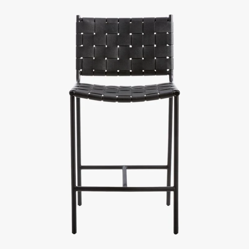 Woven Black Leather Counter Stool 19″Wx22.25″Dx38.25″H